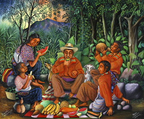 Familia Trabajadora(Working Family)2014, 23" x 34" Oil on canvas, Unframed Cat: MRO-523Mario González Chavajay |  |