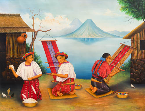 División en la Iglesia de San Juan L.L.(Division in the Church of San Juan la Laguna)1994, 20" x 24" Oil on canvas., Framed Cat: jul-005Julian Coché Mendoza |  |