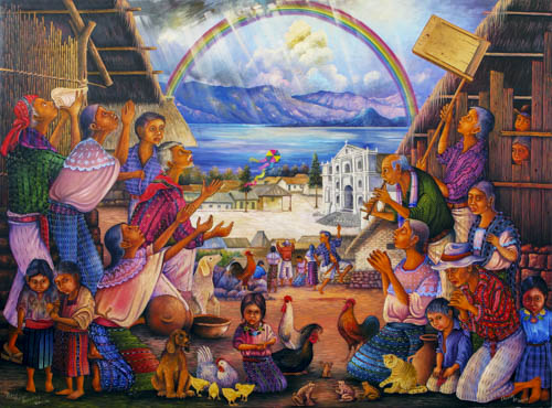 Hombres de Maiz(Men of Corn)1996, 20" x 28" Oil on canvas, Framed Cat: PR-053Pedro Rafael González Chavajay
